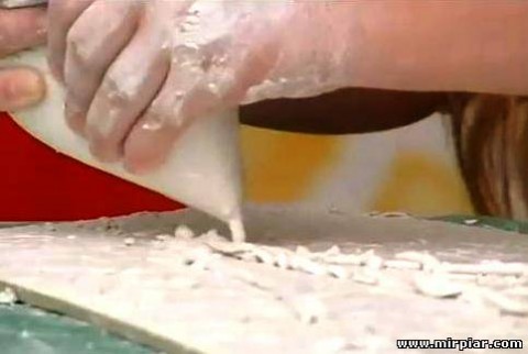 В канцелярский файл помещаем строительную смесь, срезаем уголок и начинаем рисовать.