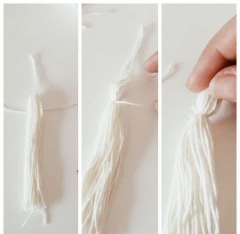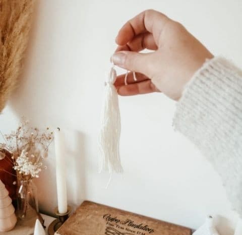 Отступаем от верхней части примерно сантиметр и еще раз перевязываем шерстяной нитью, чтобы получился колокольчик.