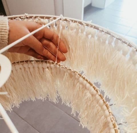 Симпатичный абажур своими руками для люстры можно сделать быстро и красиво. Начнем с того что выберем размер и начнем оплетать картон шерстяной тканью.
