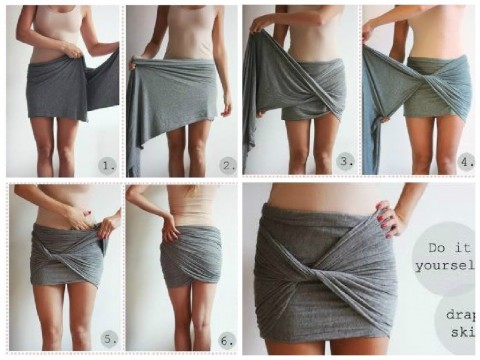 - обматываем вокруг себя, пока не останется небольшой конец, который заталкиваем вовнутрь юбки.
