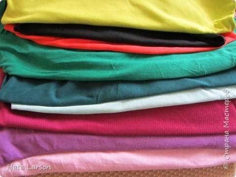 Сначала она подготовила трикотажные ленты, нарезав футболки.