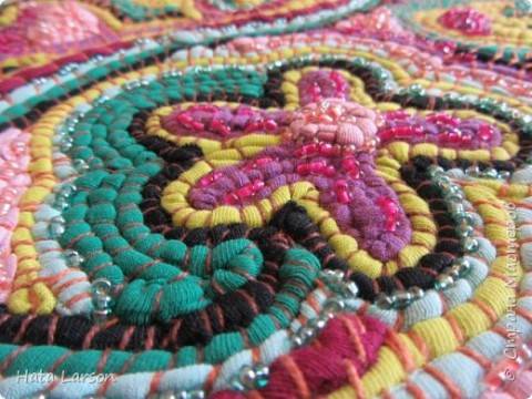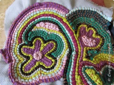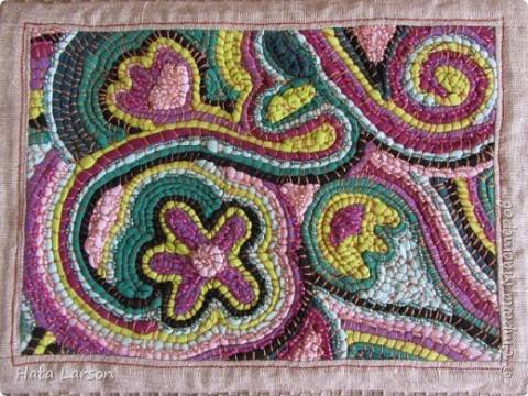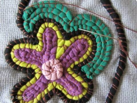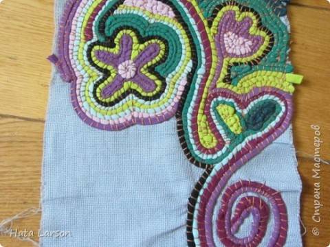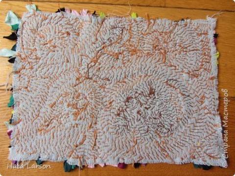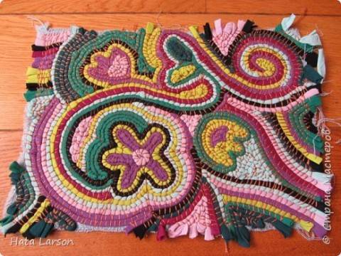 Причем коврик получается совсем не таким, как в ставшей уже привычной технике вязания крючком или сшивания косичек. Это и в самом деле своеобразная вышивка.