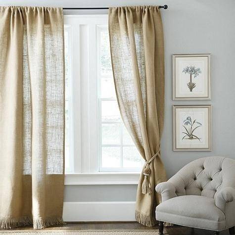 Важная информация: использовать для штор желательно только натуральную мешковину. Она бывает нескольких видов, в зависимости от мягкости ткани и поддерживанию разного окраса, некоторые магазины предоставляют похожие по фактуре ткани.