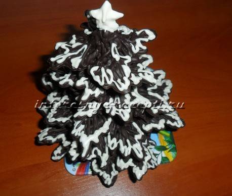 Наша звездочка уже высохла, ее мы приклеиваем к верхушке елочки с помощью белого шоколада.