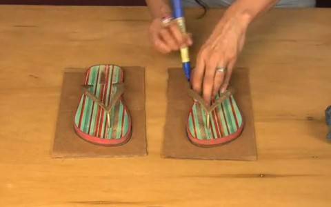 - Достаньте старые тапочки и приложите их к плотному листу картона и обведите их по контуру ручкой.