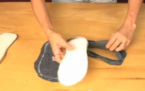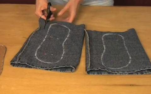 - Для изготовления верхушки тапочек нужны джинсовые карманы, которые следует осторожно срезать с джинс.