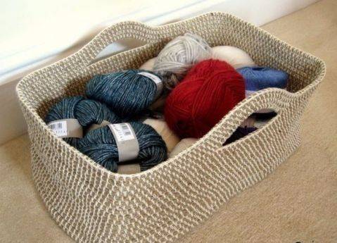 Мелочи, казалось бы, мы не замечаем некоторых мелких вещей, однако именно они создают в доме уют и дополняют интерьер. Тем более, что дополнительное место для хранения всегда пригодится. Эта красивая плетеная корзинка своими руками послужит прекрасным хранилищем для ниток или игрушек. Единственный материал, с которым мы будем работать – веревка из жгута и толстые нитки для вязания. Берем нашу веревку и начинаем при помощи спиц обвязывать ее специальной вязкой. Затем сворачиваем жгутовую веревку напополам и привязываем ее к обвязанной части. Обводим...